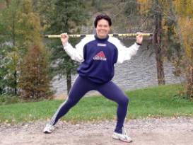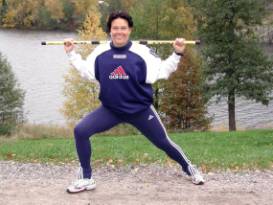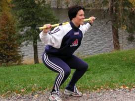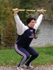 Kuva 4, tempausvala Mene kyykkyyn niin pitkälle kuin jaksat. Pidä kantapäät koko ajan kiinni maassa. Pidä selkä suorana, mutta ei notkolla , sekä leuka ja katse ylhäällä. Pidä tanko koko ajan pään päällä ja vältä eteen "kippaamista". |